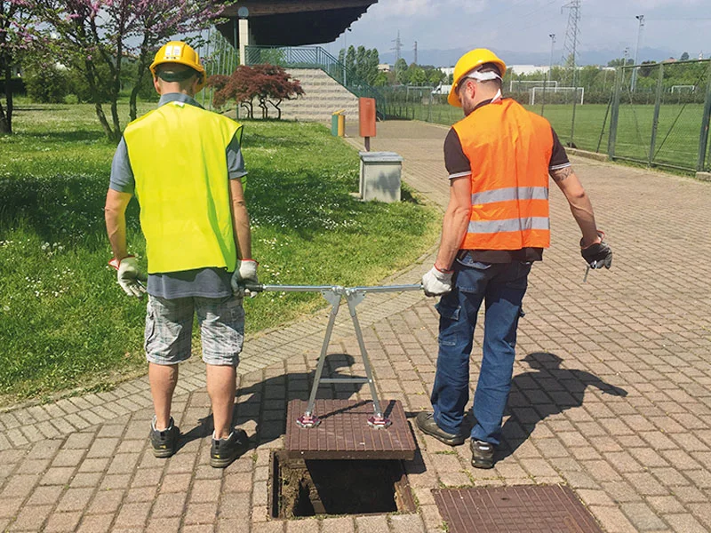 - Seguridad y comodidad: Diseñado para que dos operadores puedan levantar tapas de hasta 460 kg, evitando esfuerzos innecesarios y reduciendo riesgos laborales.