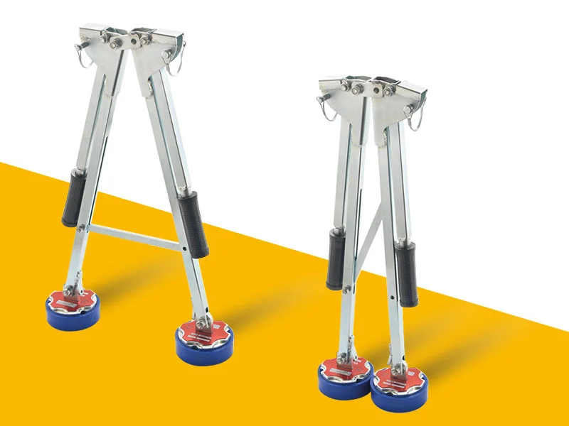 El XT3 Compass es una herramienta plegable diseñada para la apertura de tapas de alcantarilla de hierro fundido. Equipada con dos bases magnéticas redondas y brazos ajustables en forma de compás, permite a dos operadores levantar tapas de hasta 460 kg de manera segura y eficiente.